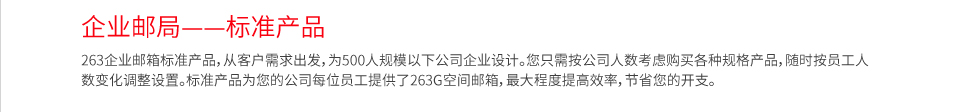 | 20用户版 | 20×263G | 263G | 30M/用户邮箱 | 1G/用户邮箱 | 3200/年 | 我要免费体验 ![]() |